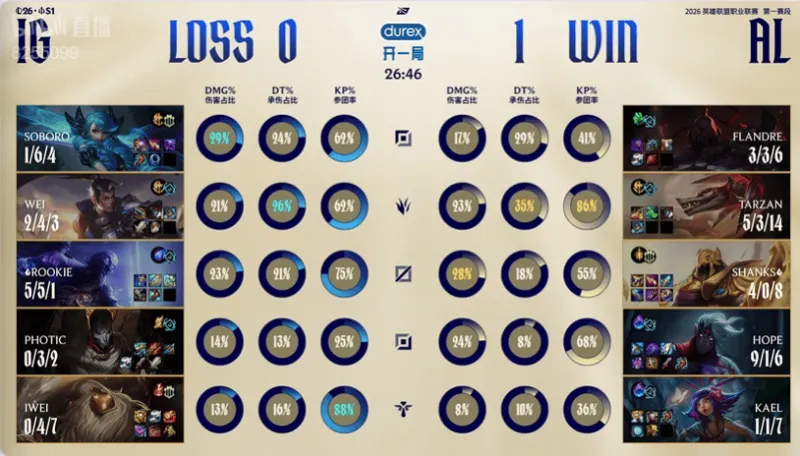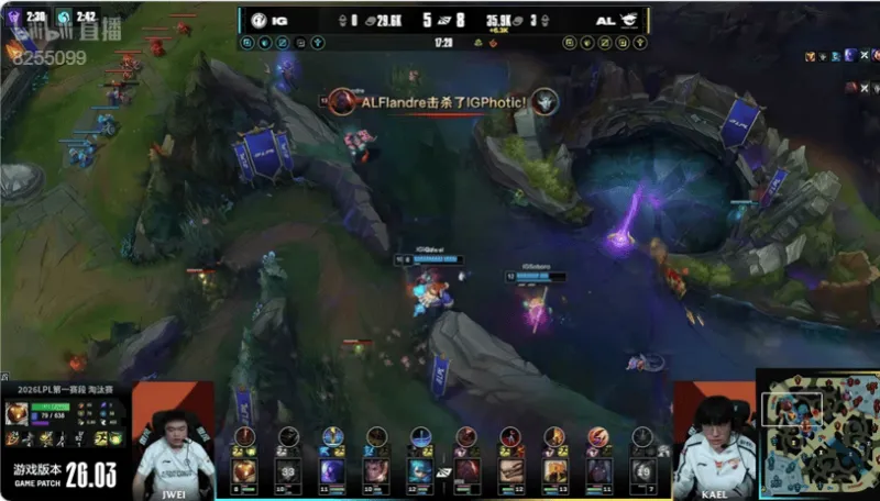 20分钟:IG集火想要击杀沙皇但是被对方丝血逃脱,AL集结反打击杀对方四人打出零换四