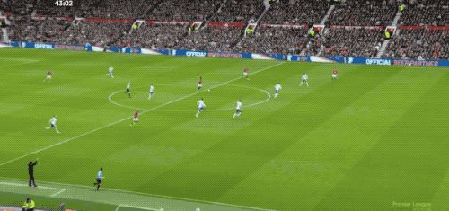 第53分钟,马丁内斯扑出姆伯莫的射门,曼联获得角球,B费主罚,卡塞米罗前点头球攻门,打破僵局。