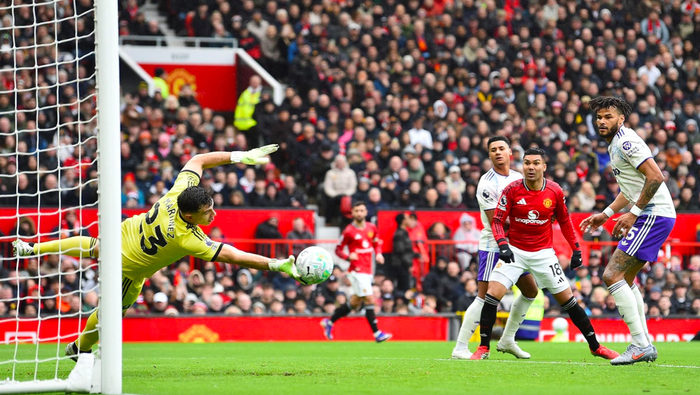 第21分钟,B费开出角球,马奎尔头球摆渡,阿玛德的头槌攻门力量十足,马丁内斯奋力将球挡出。